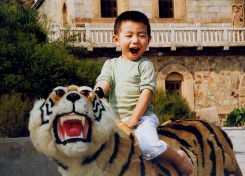 ■3、4岁的时候,妈妈觉得总被儿子欺负嘛,换一下,这一次妈妈骑在儿子身上,“驾,快带妈妈去西天取经”,挠他痒笑的直喊“妈,西天到了!妈,西天到了!”