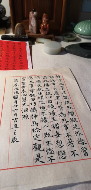 师父:遵守戒律首先要了解和理解戒律。戒律抑止其心而约束其行。无其心,行止何须约束?常人心片刻不宁,指挥行动,动则多有失常,故而戒律首先是要治心,心能得到约束,那么行为举止也就受到控制。通过这种积累,排除种种妄想,使心不乱,行存真。逐渐回归自然。心能安宁,种种修持方法则事半功倍。戒律也是修行进步基础课程。